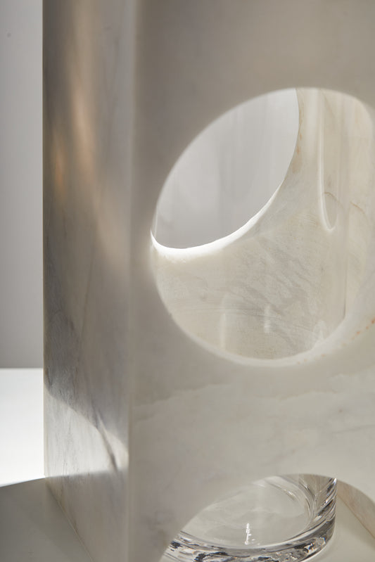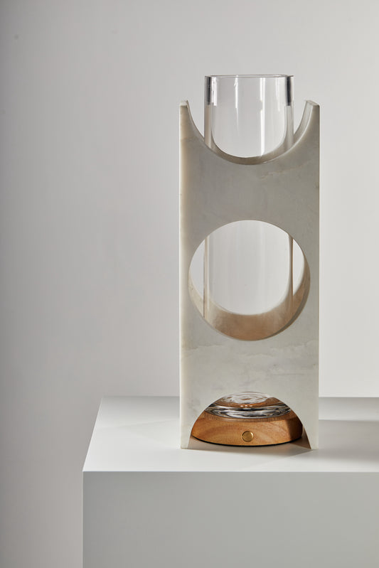 Hollow 03 - Hollow Design Carved Marble Vase with Wooden Base Light